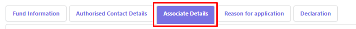 14. Scroll back up the screen to select 'Associate Details' tab.