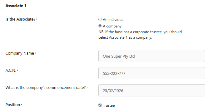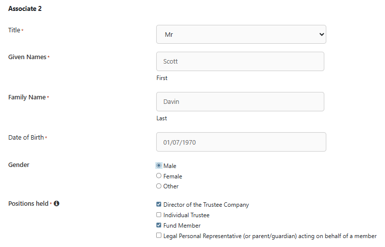 18. Where a corporate trustee exists, the additional associates should complete the checkboxes as 'Director' and 'Fund Member'.