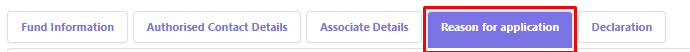 19. Scroll back up the screen to select 'Reason for application' tab.
