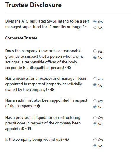 This process has proven to be a time saver compared to data entry via the ABR website. Information already captured when generating the New SMSF document pre-populates the required fields in the ABN/TFN form.