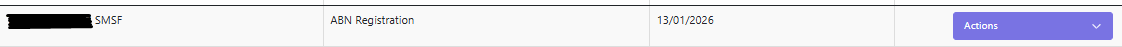33. If the Certificate for the ABN number is not generated, a status will display 'Subject to manual review'. The Actions status will display an amber colour to display 'ABN - Manual Review'.