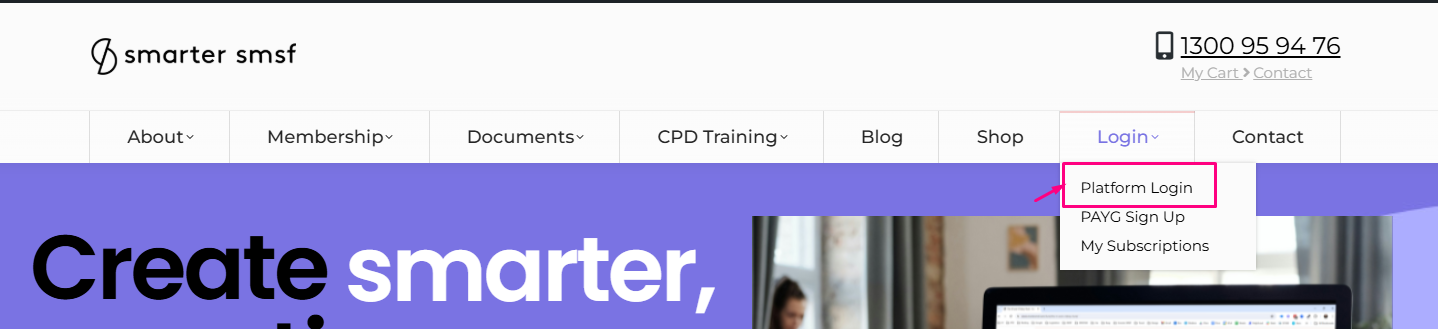 1. If you are on the Smarter SMSF website, you will go to 'Login > Platform Login' - this will redirect you to the new login page at https://sso.smartersmsf.com