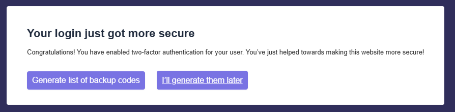You will have the opportunity to generate a list of backup codes as part of this initial process.