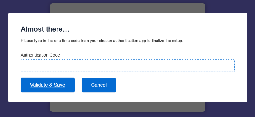 - 'One-time' code via a 2FA app - e.g. Google Authenticator or Microsoft Authenticator; or