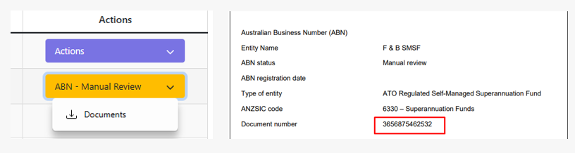 A new ' amber' status has been added to indicate when ABN/TFN applications are subject to manual ATO review. Users can follow up the order with the ABR using the Document Number provided on the generated Certificate.