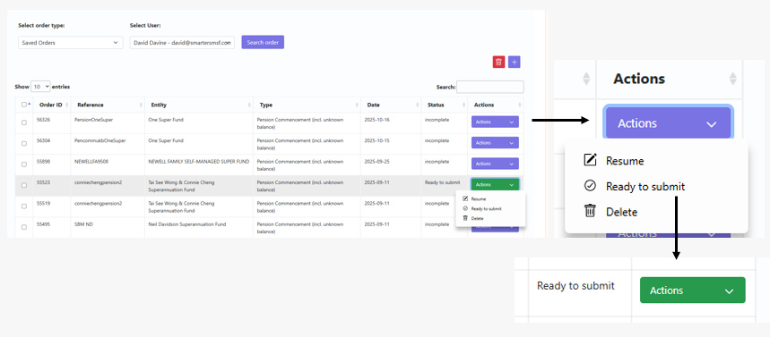 For Document subscription members. The Admin Console has been enhanced with a new feature allowing ‘parent’ users to mark 'saved orders' of a user under the subscription as ‘Ready to Submit’ - the Action button will change to green to highlight the status change of ready to submit. This visual status helps teams to track the progress of an order that has been reviewed by a parent user (e.g. manager) and ensures documents have had oversight before finalisation.