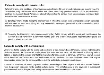 Following ATO's updated guidance in TR 2013/5 - when a pension commences and ceases, Smarter SMSF has updated the terms & conditions of the pension commencement documents where the member has failed to meet the pension standards in a financial year - e.g. did not meet minimum pension. Updates have been made within the trustee resolution, along with notification to the fund member, which confirms that no minimum pension is required to be withdrawn in the year of commutation: