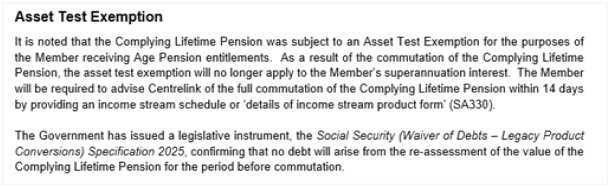 - Legacy Pensions: Updated for Asset-Test Exempt (ATE) changes effective 27 October 2025