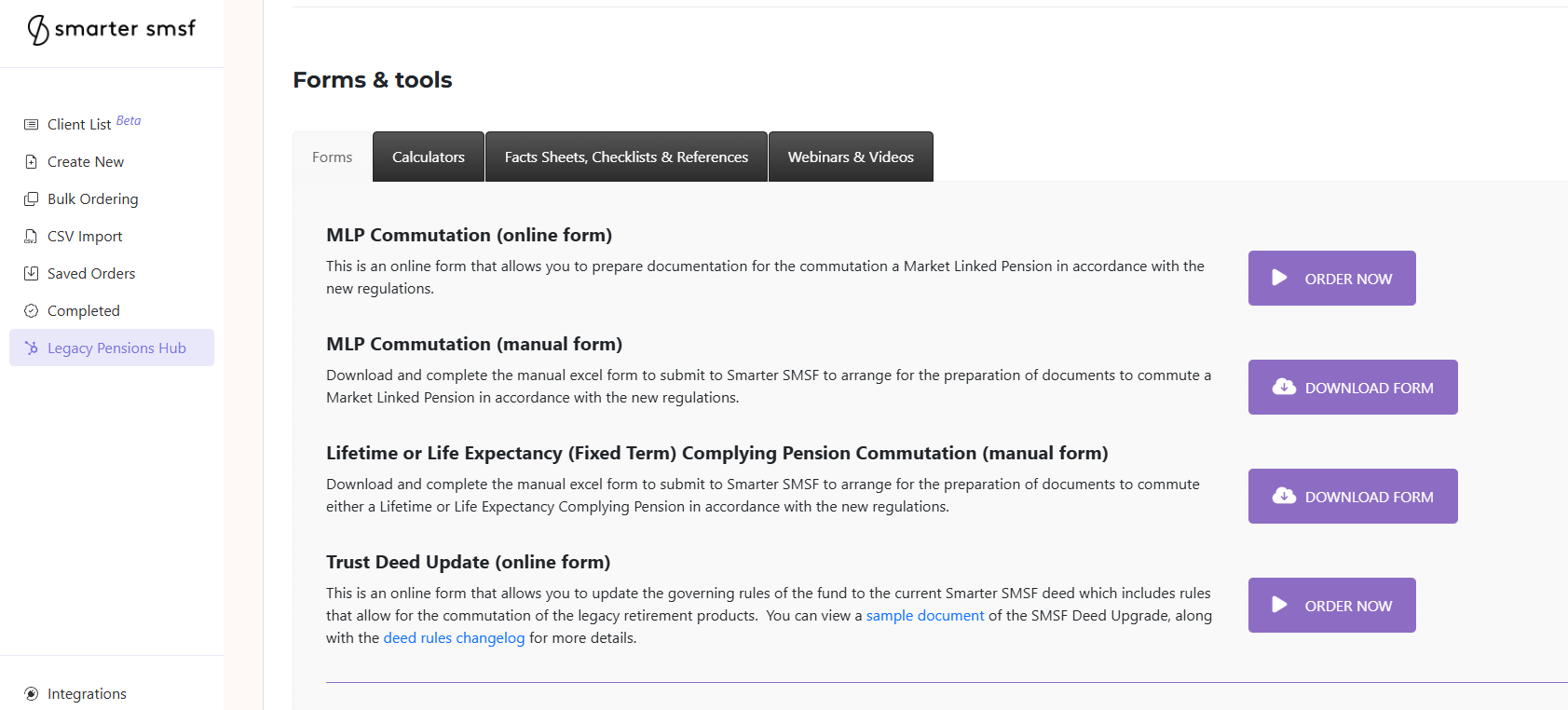 The new Smarter SMSF public API allows members to connect their order forms (internal or external) for document automation. Currently available for: