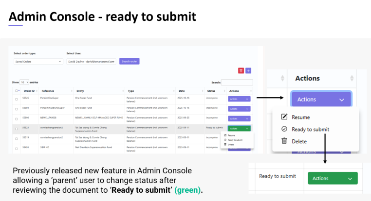 Enhancements to the Admin Console now allow parent or authorised users to mark a reviewed document as “Ready to submit”. This provides a clear visual status indicator and supports multi-user review processes, particularly for larger teams managing high document volumes.
