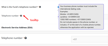 Additionally, updated ATO validation rules now require international and area codes for phone numbers. The form has been updated to pre-populate “+61” and includes a tooltip to guide users.